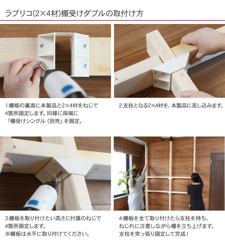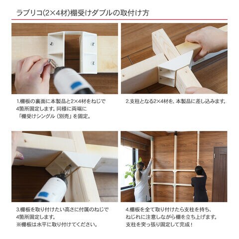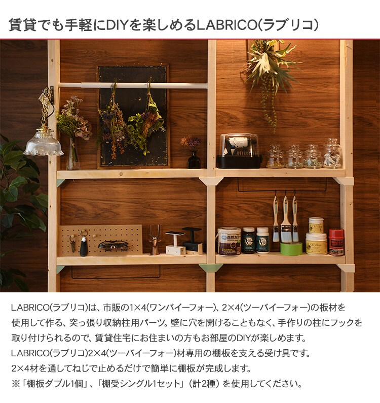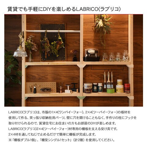 ラブリコ 2×4 棚受ダブル マットブラック LABRICO ツーバイフォー ワンバイフォー SPF材 DIY 棚 壁 取り付け 壁面収納 北欧 インテリア 賃貸住宅 初心者 簡単 ナチュラル シンプル おしゃれ