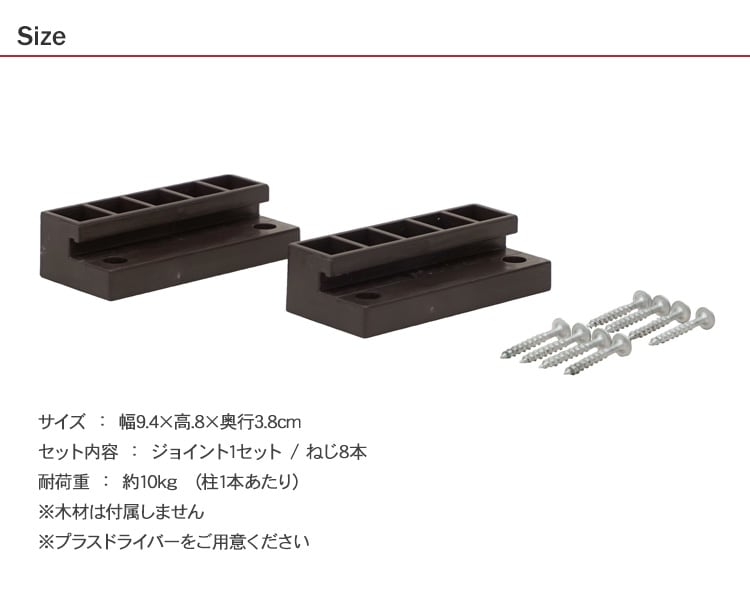※市販のツーバイフォー材(断面約38mm×89mm)を使った突っ張り商品「2×4アジャスター」の木材の長さが足りない場合に木材を接合するパーツです。
