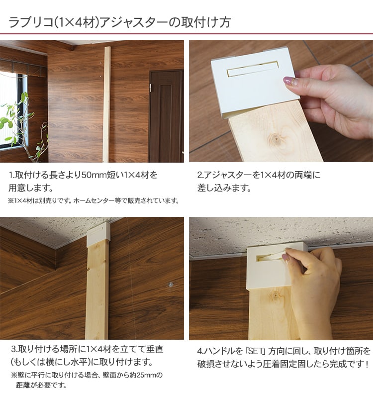ラブリコ 1×4 アジャスター オフホワイト LABRICO ワンバイフォー SPF材 DIY 棚 壁 取り付け 壁面収納 北欧 インテリア 賃貸住宅 初心者 簡単 ナチュラル シンプル おしゃれ
