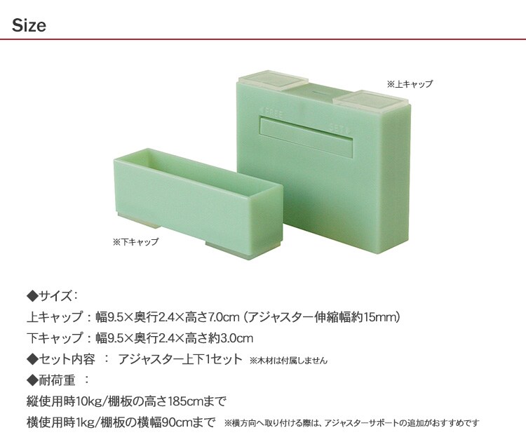 サイズ:上キャップ:幅9.5×奥行2.4×高さ7.0cm(アジャスター伸縮幅約15mm)