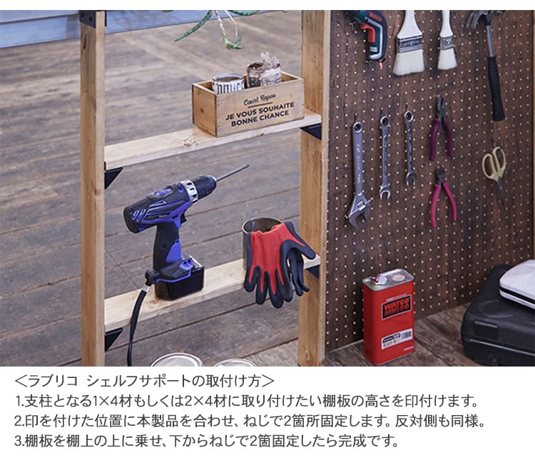 ラブリコ 2×4 / 1×4 シェルフサポート アイアン ホワイト LABRICO ツーバイフォー SPF材 DIY 棚 壁 取り付け 壁面収納 北欧 インテリア 賃貸住宅 初心者 簡単 ナチュラル シンプル おしゃれ