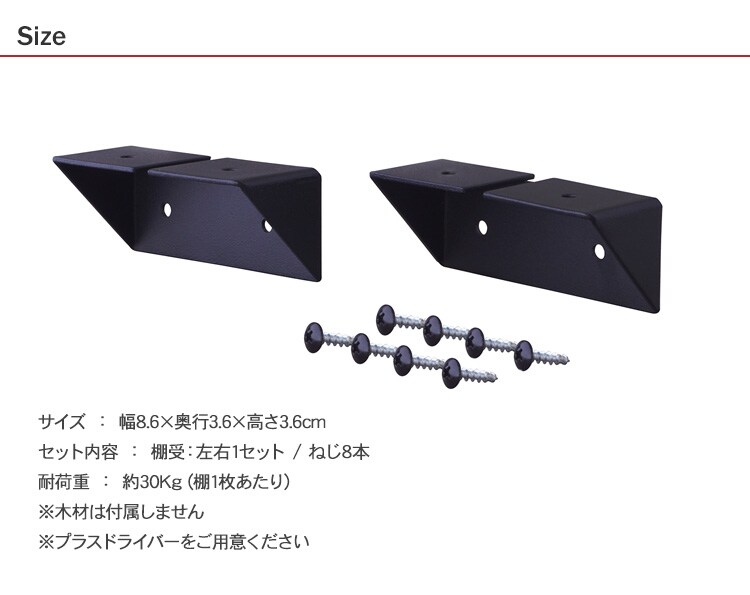 ※シェルフサポート本体にはサビにくい塗装をしていますが完全にサビの発生を防ぐものではありません。