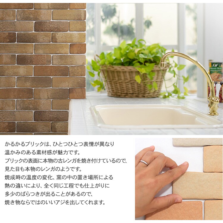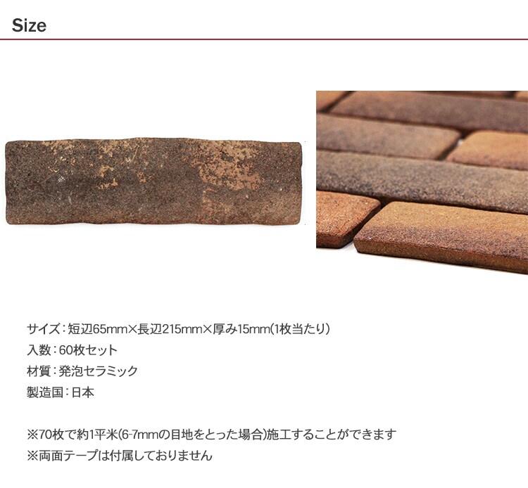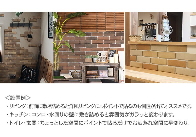 安心の日本製!軽量なタイルの裏面に両面テープで貼るだけでレンガのようなおしゃれな壁がDIYできます。