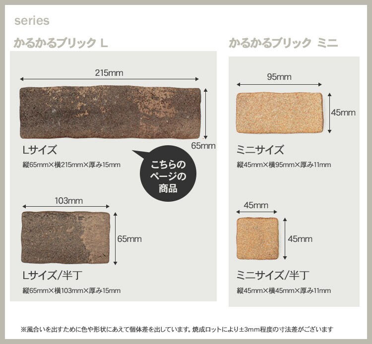 ※生産工程上、生産ロットによっては前回お届けしたものと色やサイズ、厚みに差がある場合がございます。