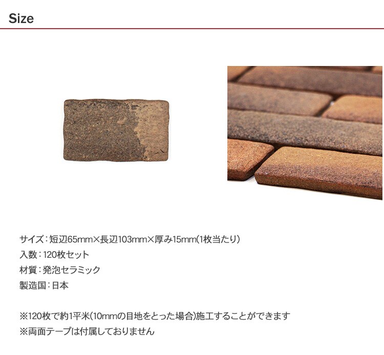 ※120枚で約1平米(10mmの目地をとった場合)施工することができます