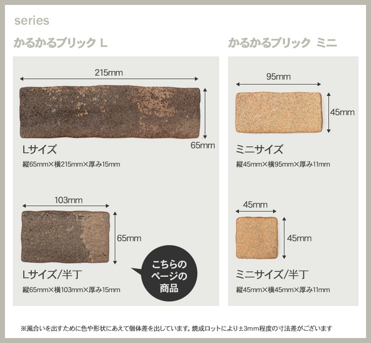※生産工程上、生産ロットによっては前回お届けしたものと色やサイズ、厚みに差がある場合がございます。