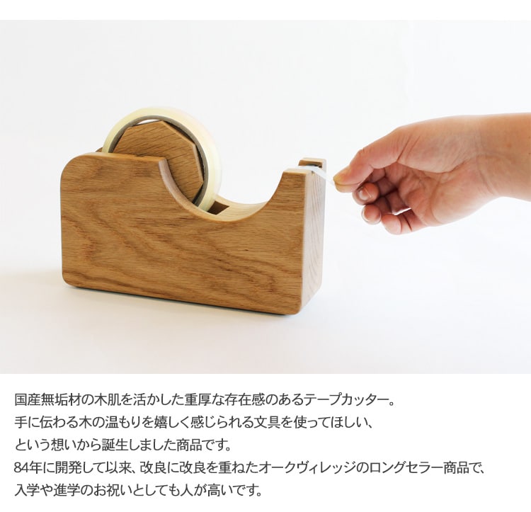 オークヴィレッジ テープカッター大 ブラウン 木製 文房具 セロハンテープ 台 入学祝い ギフト プレゼント リビング デスク 書斎 子供部屋 北欧 インテリア ナチュラル シンプル おしゃれ 国産 日本製