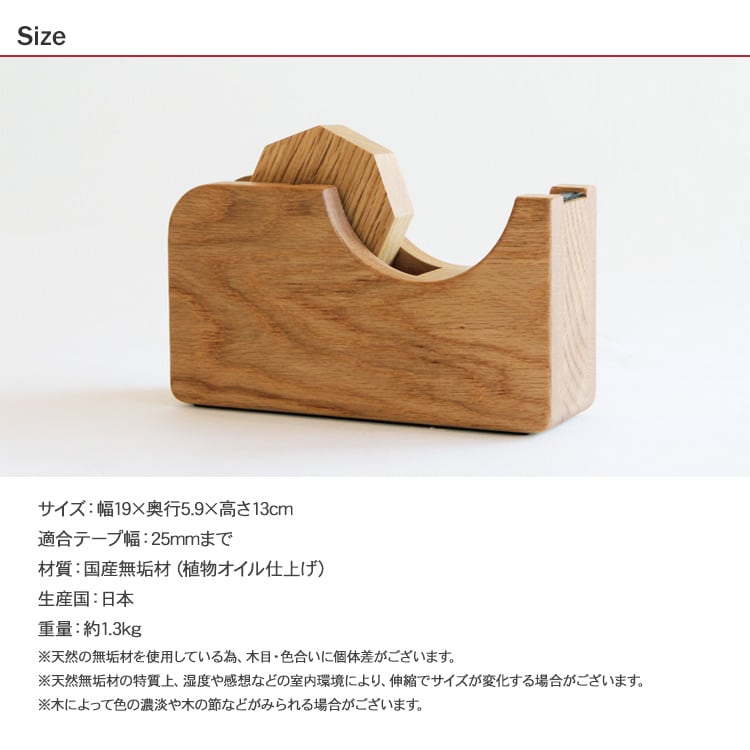 国産ナラ材の木肌を活かした重厚な存在感のあるテープカッター。