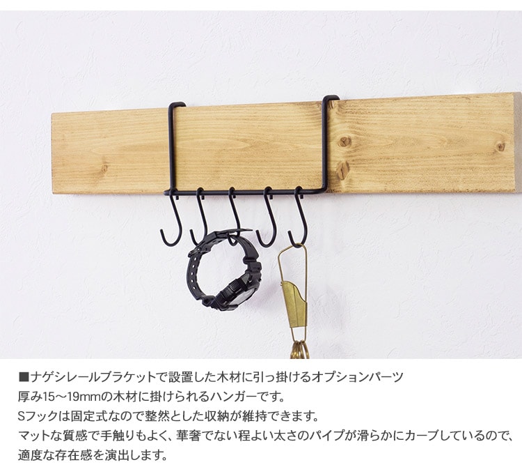 ■ナゲシレールブラケットで設置した木材に引っ掛けるオプションパーツ