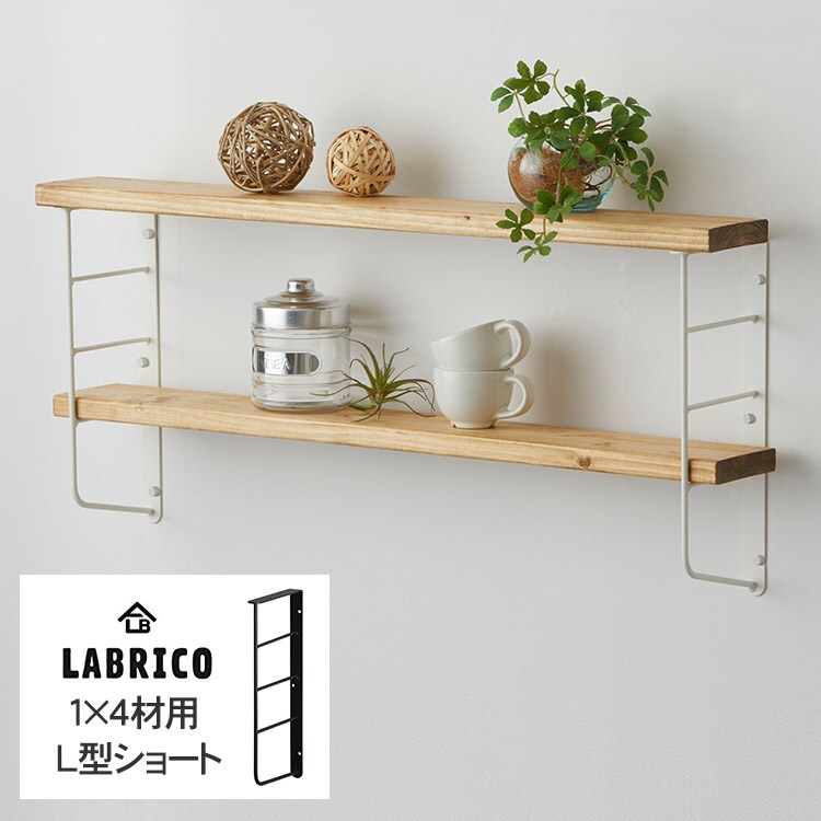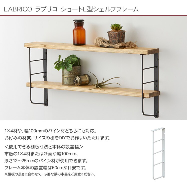 ショートL型シェルフフレーム4 LABRICO ラブリコ ホワイト LABRICO 棚 ディスプレイ 見せる収納 壁面収納 北欧 インテリア 賃貸住宅 初心者 簡単 ナチュラル シンプル おしゃれ