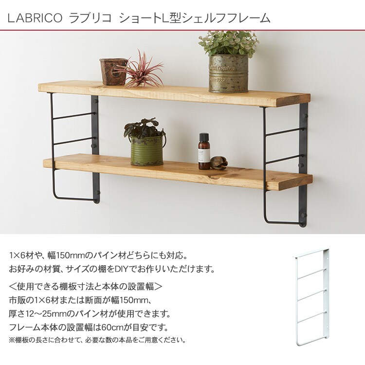 ショートL型シェルフフレーム6 LABRICO ラブリコ ホワイト LABRICO 棚 ディスプレイ 見せる収納 壁面収納 北欧 インテリア 賃貸住宅 初心者 簡単 ナチュラル シンプル おしゃれ