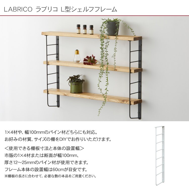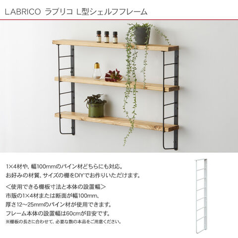 L型シェルフフレーム4 LABRICO ラブリコ ホワイト LABRICO ワンバイフォー 棚 ディスプレイ 見せる収納 壁面収納 北欧 インテリア 賃貸住宅 初心者 簡単 ナチュラル シンプル おしゃれ