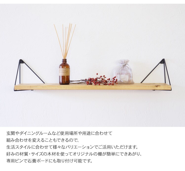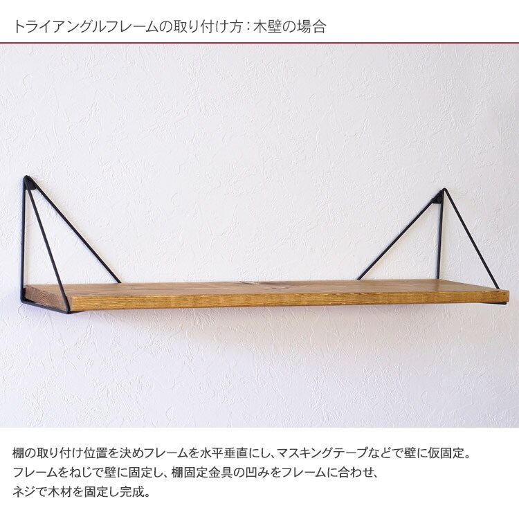 壁に木材を取り付けてウォールシェルフが作れる棚受けフレームです。