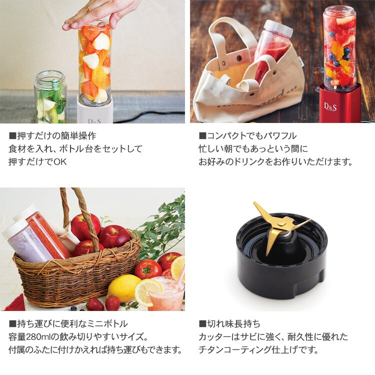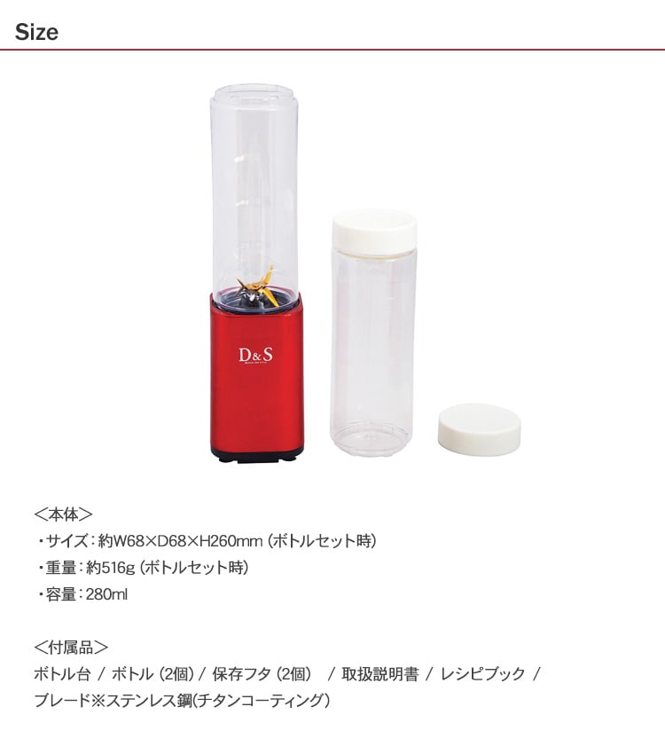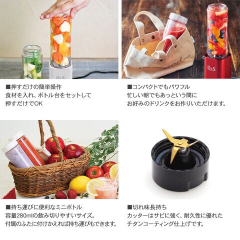 D&S ミニボトルブレンダー レッド 調理家電 調理器具 ブレンダー 簡単 ジュース スムージー ヘルシードリンク ミニボトル そのまま飲める 持ち運び 保存 ふた付き キッチン キッチン家電 キッチン用品