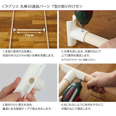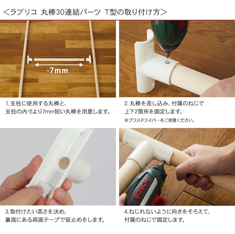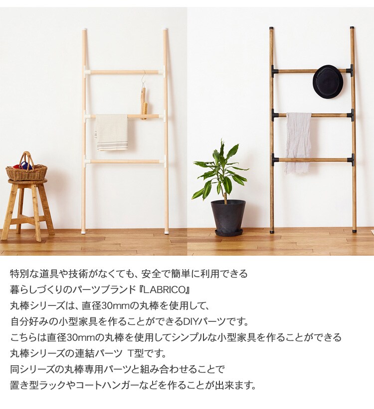 ラブリコ 丸棒30連結パーツ T型 オフホワイト LABRICO 木製丸棒 DIY 棚 壁 取り付け 手作り家具 小型家具 賃貸住宅 初心者 簡単
