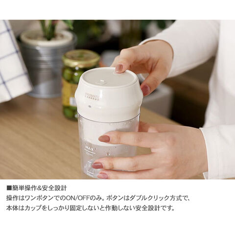 操作はワンボタンでのON/OFFのみ。ボタンはダブルクリック方式で、本体はカップをしっかり固定しないと作動しない安全設計。