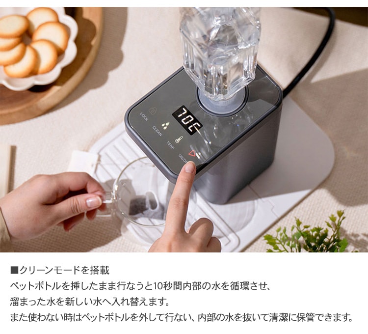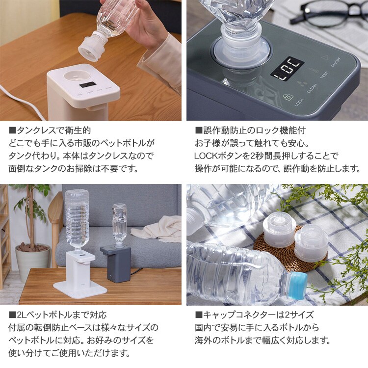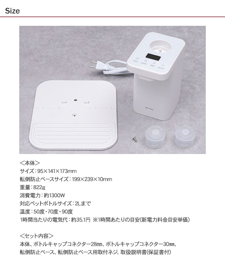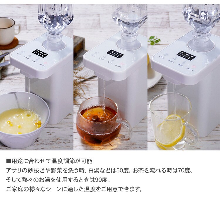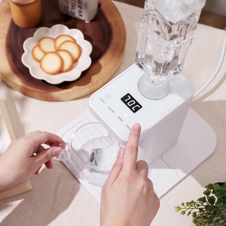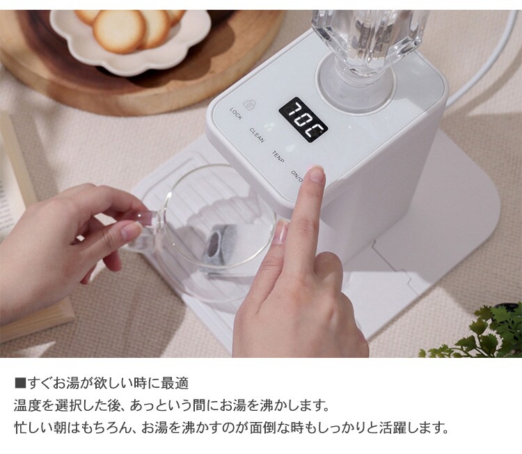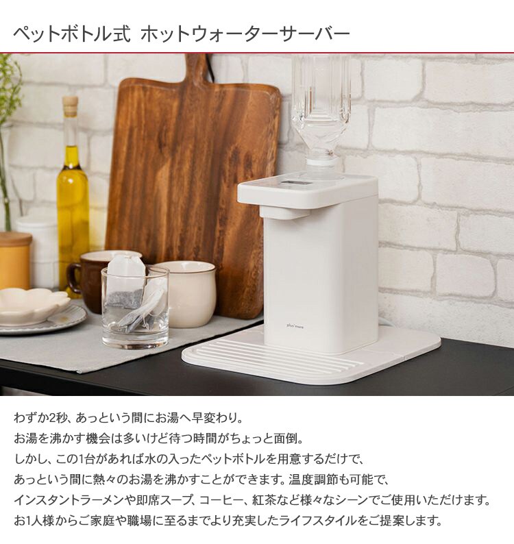 plus more プラスモア ペットボトル式 ホットウォーターサーバー ホワイト 温水 給水 温水器 お湯 卓上 机上 安全 コンパクト 便利 家電 おしゃれ 北欧