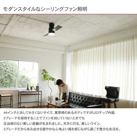 JAVALO ELF ジャバロエルフ Modern Collection LEDシーリングファン 2 blades style ブラック 天井照明 インテリア おしゃれ LEDライト 空調機 簡単取付 北欧 調光機能
