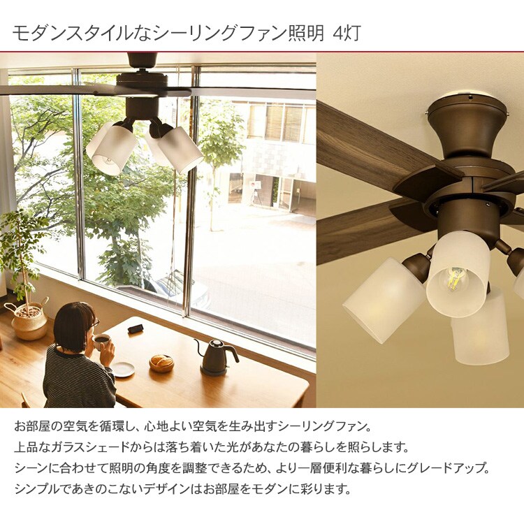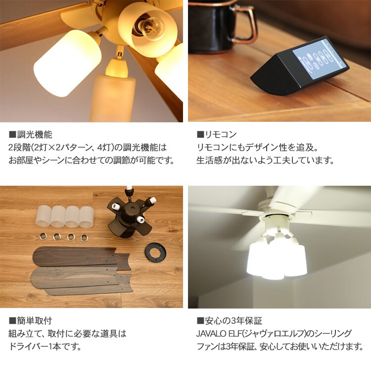 JAVALO ELF ジャバロエルフ Modern Collection シーリングファン 4灯 ホワイト 天井照明 インテリア おしゃれ LEDライト 空調機 簡単取付 北欧 調光機能