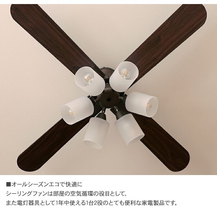JAVALO ELF ジャバロエルフ Modern Collection シーリングファン 6灯 ブラウン 天井照明 インテリア おしゃれ LEDライト 空調機 簡単取付 北欧 調光機能