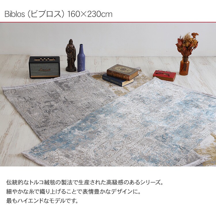 Ne WORKS フロアラグ 160×230cm Biblos BLUE ラグ カーペット おしゃれ 柄 長方形 トルコ絨毯 ビスコース ラグジュアリー