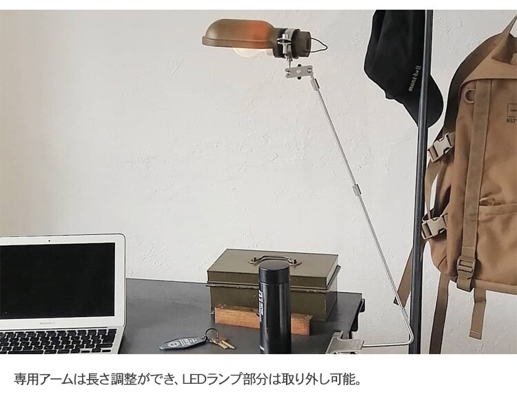 専用アームは長さ調整ができ、LEDランプ部分は取り外し可能。