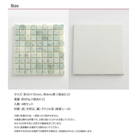 サイズ:約151×151mm、約4mm厚(1枚あたり)