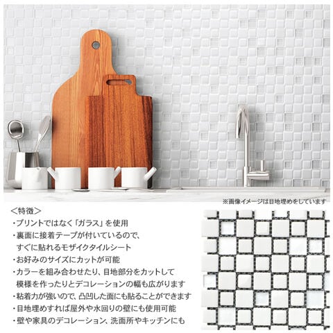 ・裏面に接着テープが付いているので、裏紙をは剥がすだけですぐに貼れるモザイクタイルシート。