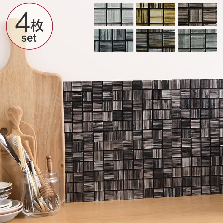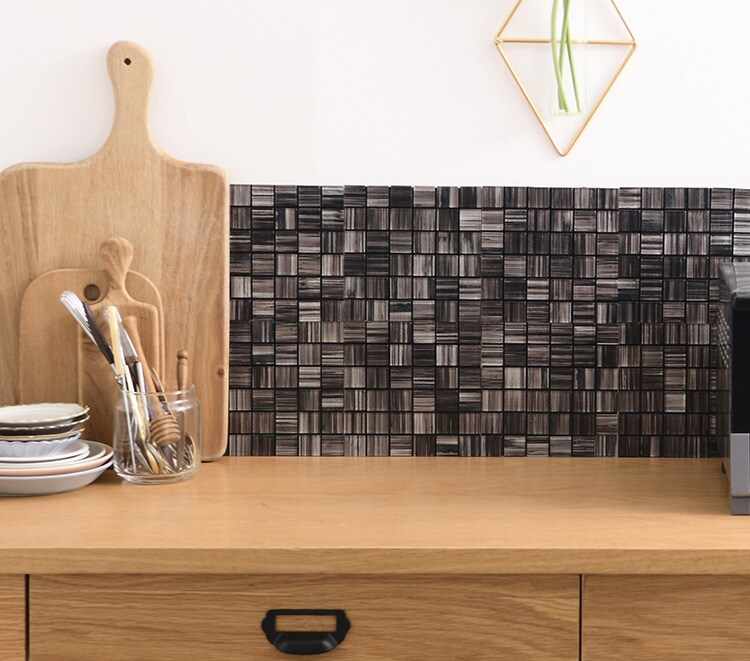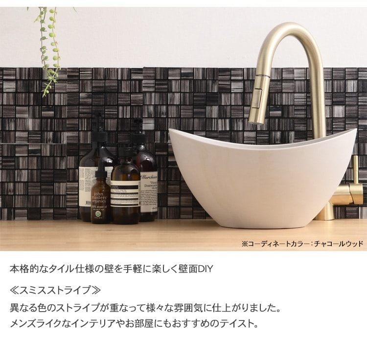 裏テープ付き Hatte (スミスストライプ) 1ロット(4枚) チャコールウッド _PP02 ガラス タイルシール 壁 キッチンタイル カフェ 店舗 インテリア キッチン リビング 寝室 玄関 テーブル 浴室 洗面台 トイレ 石材 DIY 屋外 室内 おしゃれ