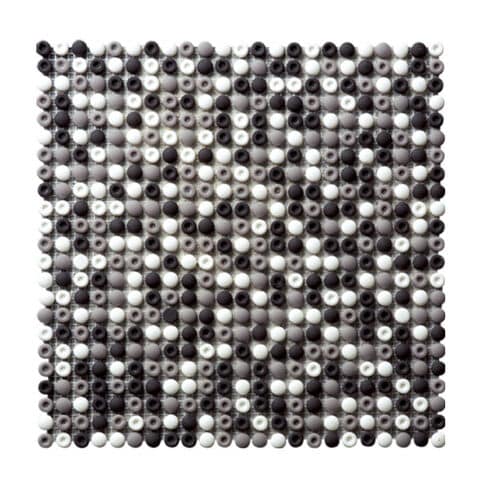 いびつな形と丸い穴が面白いガラスモザイクタイル。