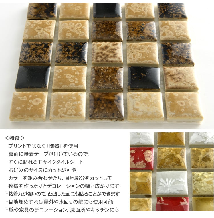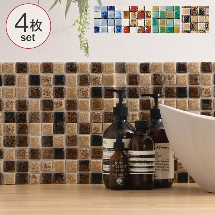 裏テープ付き Hatte (小紋) 1ロット(4枚) 瑠璃 _PP02 陶器 タイルシール 壁 キッチンタイル カフェ 店舗 インテリア キッチン リビング 寝室 玄関 テーブル 浴室 洗面台 トイレ 石材 DIY 屋外 室内 おしゃれ