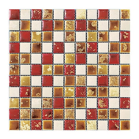 釉薬の発色がまるで着物の柄のような結晶が特徴の陶器製モザイク。