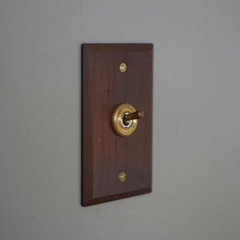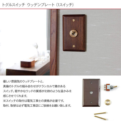 商品説明:優しい雰囲気のウッドプレートと、真鍮のトグルの組み合わせがクラシカルで趣きあるスイッチ。