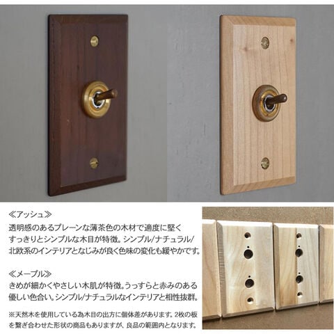 トグルスイッチ ウッデンプレート (1スイッチ) アッシュ 照明 スイッチ 照明器具 壁スイッチ 北欧 インテリア おしゃれ 韓国 インテリア ライト ダイニング リビング 寝室 玄関 ナチュラル 和モダン インダストリアル レトロ