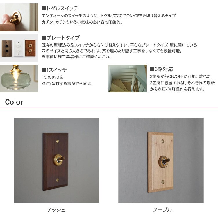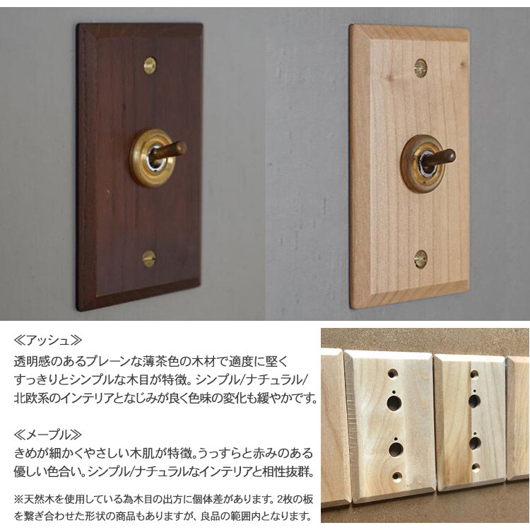 トグルスイッチ ウッデンプレート (1スイッチ) メープル 照明 スイッチ 照明器具 壁スイッチ 北欧 インテリア おしゃれ 韓国 インテリア ライト ダイニング リビング 寝室 玄関 ナチュラル 和モダン インダストリアル レトロ