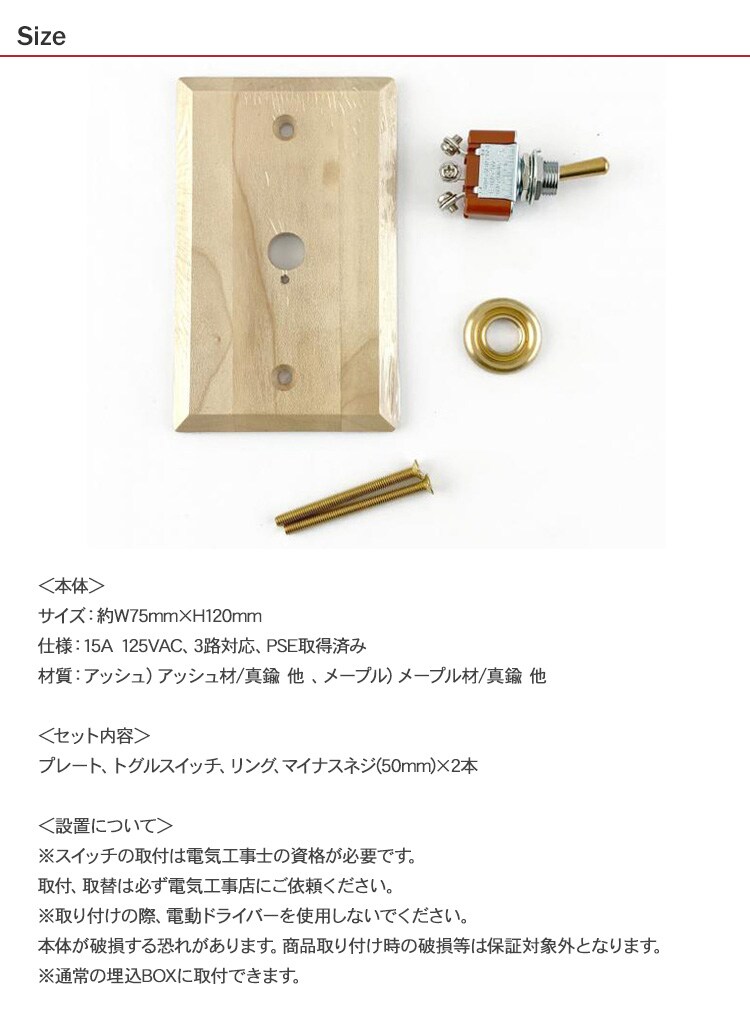 セット内容:プレート、トグルスイッチ、リング、マイナスネジ(50mm)×2本