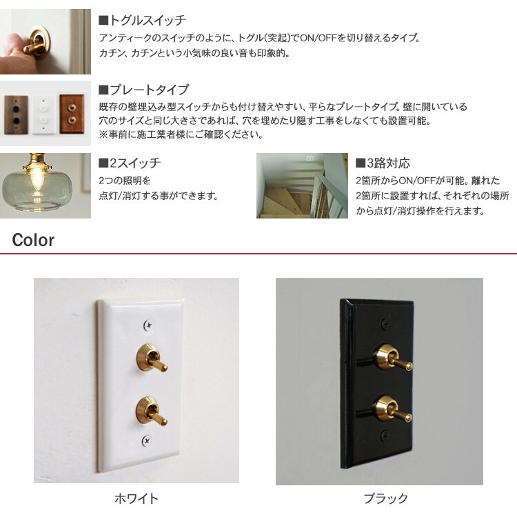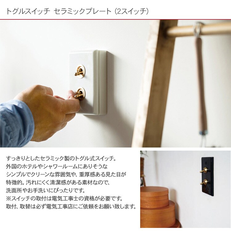 トグルスイッチ セラミックプレート (2スイッチ) ブラック 照明 スイッチ 照明器具 壁スイッチ 北欧 インテリア おしゃれ 韓国 インテリア ライト ダイニング リビング 寝室 玄関 ナチュラル 和モダン インダストリアル レトロ