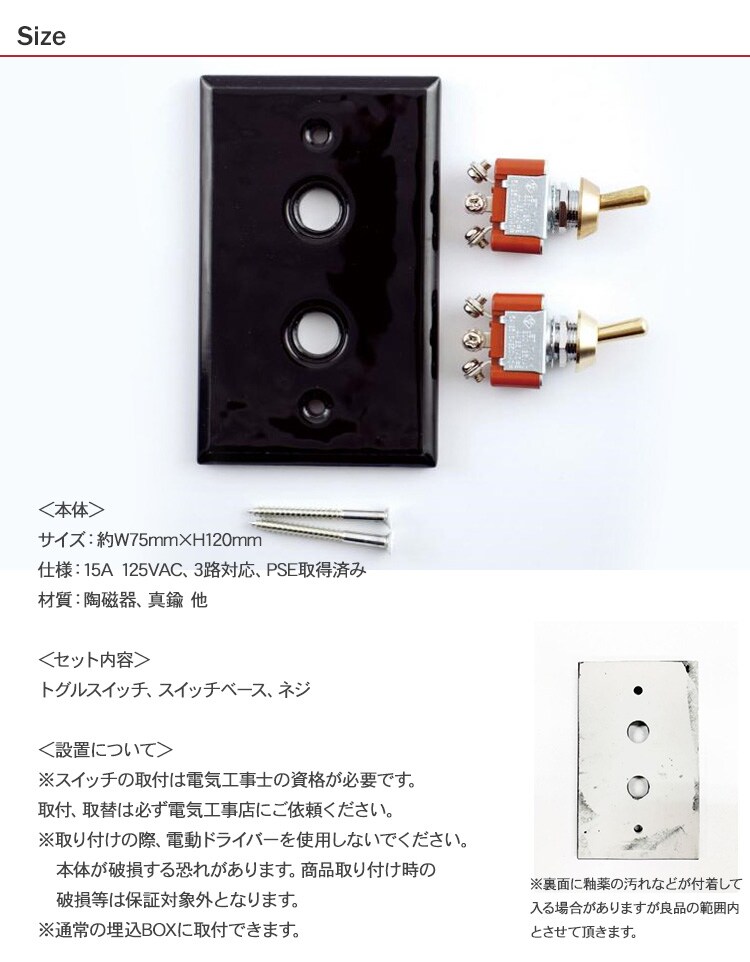 商品説明:すっきりとしたセラミック製のトグル式スイッチ。