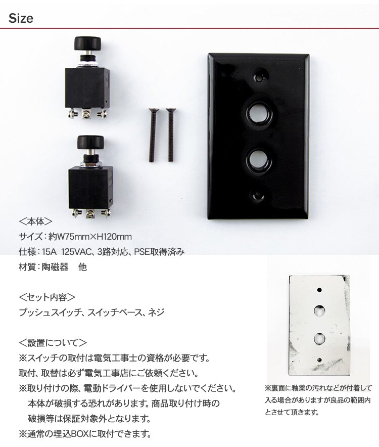 商品説明:オールセラミックのプレート型プッシュ式スイッチ。