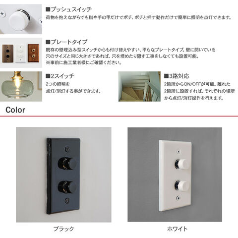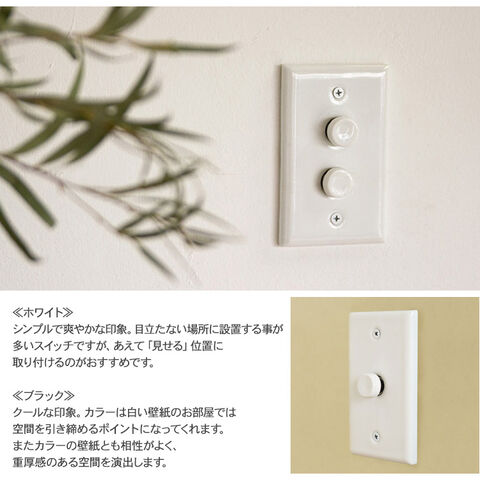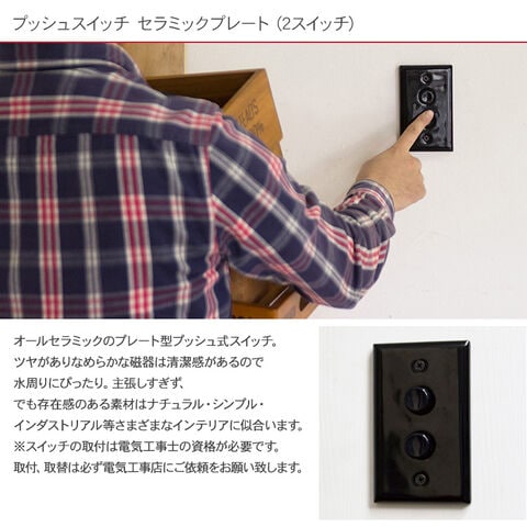 プッシュスイッチ セラミックプレート (2スイッチ) ブラック 照明 スイッチ 照明器具 壁スイッチ 北欧 インテリア おしゃれ 韓国 インテリア ライト ダイニング リビング 寝室 玄関 ナチュラル 和モダン インダストリアル レトロ