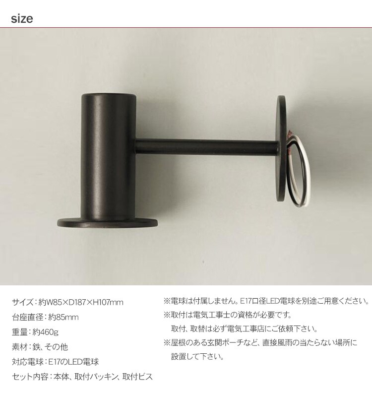 サイズ:約W85×D187×H107mm(台座直径:約85mm)、重量:約460g、材質:鉄、その他セット内容:本体、取付パッキン、取付ビス
