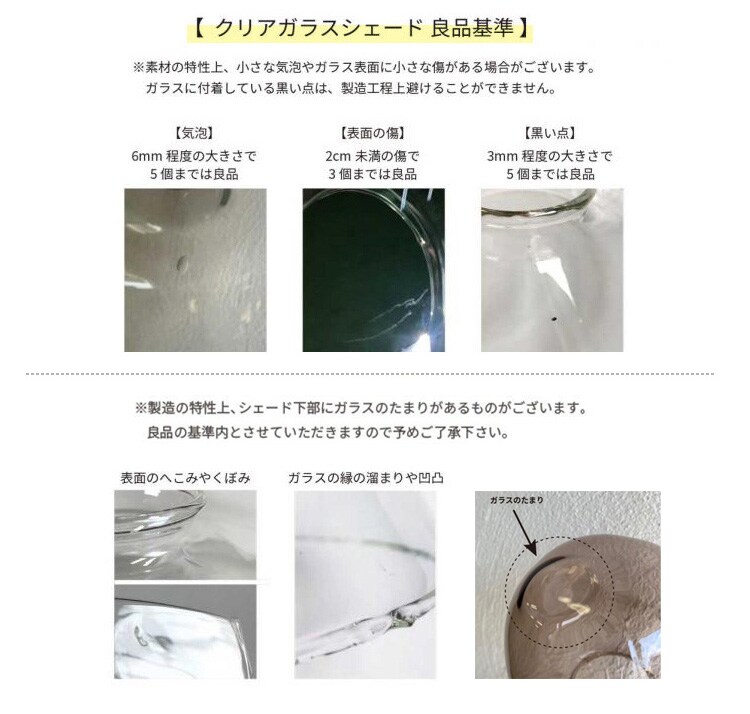 ※工場で職人の手により生産しているものが多いため、黒点や気泡が入っているものもございますが、良品の範囲内とさせていただいております。