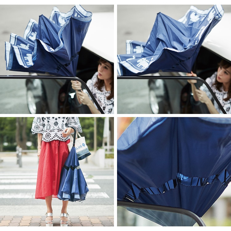 花のつぼみのように逆さに開くので、車の乗り降り時にスムーズに傘の開閉が出来ます。