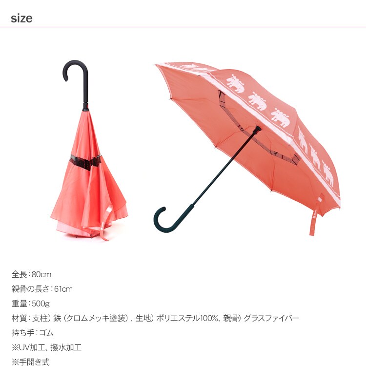 材質:支柱:鉄(クロムメッキ塗装)、生地:ポリエステル100%、親骨:グラスファイバー、持ち手:ゴム