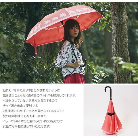 今までの傘の常識を覆し、新しい傘の形としてスタンダードになりつつある逆さに開く2重傘「moz」コラボ。