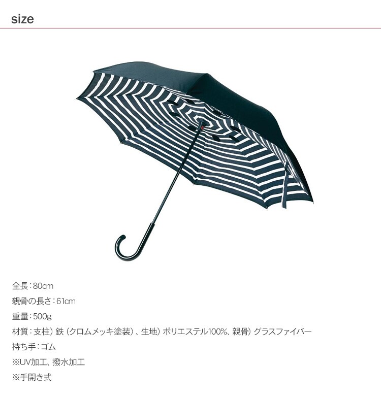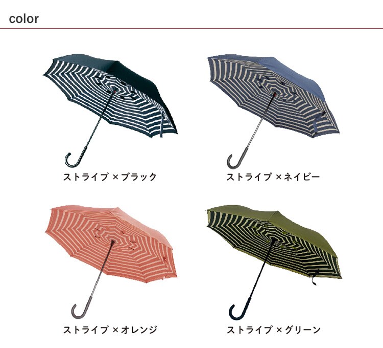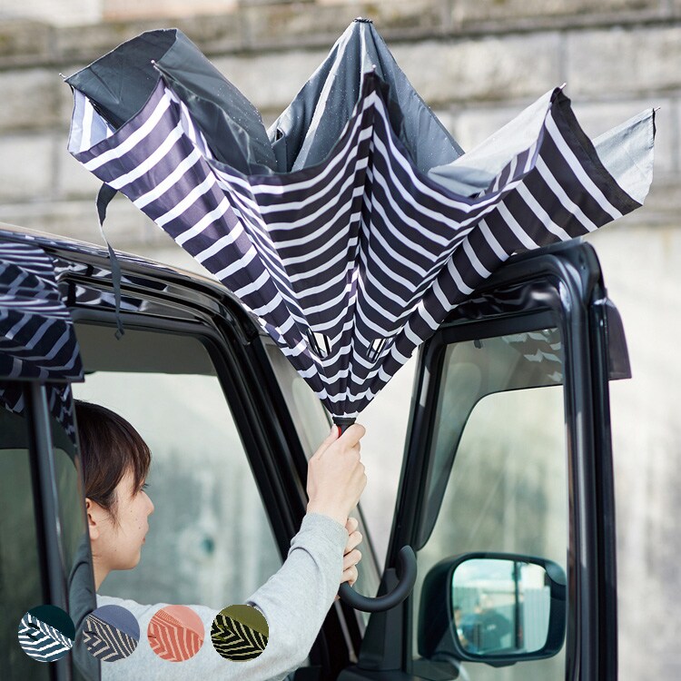 商品説明:今までの傘の常識を覆し、新しい傘の形としてスタンダードになりつつある逆さに開く2重傘。