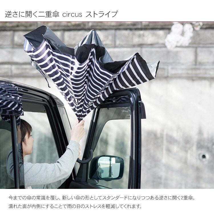 逆さに開く二重傘 circus(ストライプ) ストライプ×ブラック