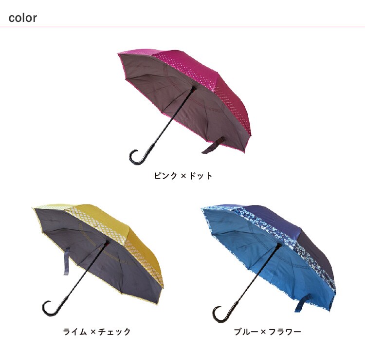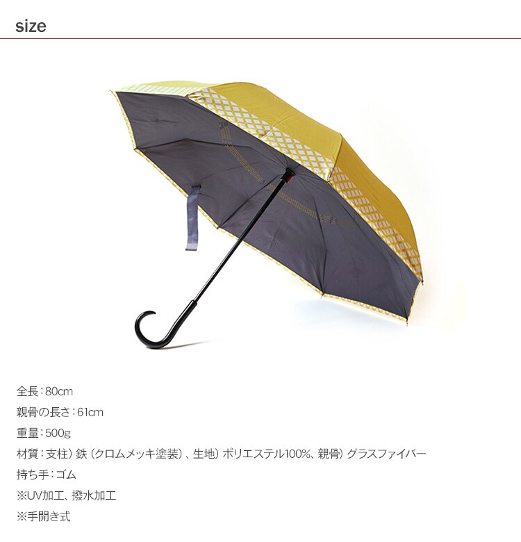 商品説明:今までの傘の常識を覆し、新しい傘の形としてスタンダードになりつつある逆さに開く2重傘。