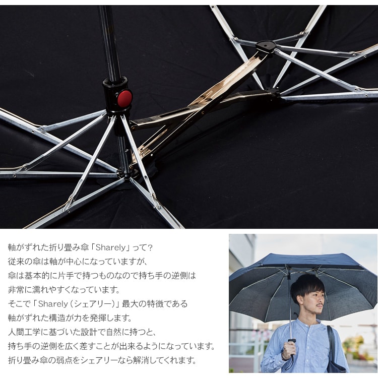 商品説明:傘本来の形を実現!軸がずれた折り畳み傘。
