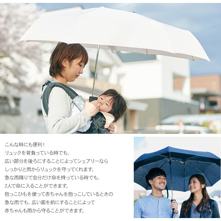 抱っこひもを使って赤ちゃんを抱っこしているときの急な雨でも、広い面を前にすることによって赤ちゃんも雨から守ることができます。